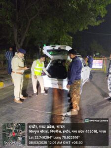 इंदौर- शहर में अपराध व अपराधियों पर नियंत्रण हेतु व आगामी त्यौहार होली/रंगपंचमी को ध्यान में रखते हुए पुलिस कमिश्नर इंदौर संतोष कुमार सिंह के मार्गदर्शन में , एडिशनल कमिश्नर अमित सिंह व एडिशनल कमिश्नर (क्राइम) मनोज कुमार श्रीवास्तव के दिशा निर्देशन में इंदौर शहर के चारों जोन व यातायात के डीसीपी के नेतृत्व में,रात से सुबह तक नगरीय इंदौर के संबंधित क्षेत्र के वरिष्ठ पुलिस अधिकारियों व थाना प्रभारियों के साथ पुलिस फोर्स ने सभी थाना क्षेत्रों में गुंडे बदमाशों असामाजिक तत्व पर निगरानी एवं धरपकड़ के लिए सरप्राइज चैकिंग व कॉम्बिंग गश्त की गई। इस दौरान इंदौर पुलिस द्वारा गुंडे/बदमाशों व असामाजिक तत्वों की निगरानी करते हुए लगभग कुल 1611 बदमाशो को चेक करते हुए, उनमे से 921 पर उचित कार्यवाही की गई हैं जिसके अंतर्गत विभिन्न प्रकरणों में वांछित कुल 382 से ज्यादा वारंटों को तामील, कराया गया