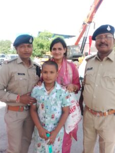 इंदौर शहर में यातायात प्रबंधन पुलिस द्वारा ड्यूटी की जा रही थी, इसी दौरान आज दस साल का बच्चा अपने परिवार से बिछड गया था जिसको यातायात की निरीक्षक राधा यादव एवं उनि उमाशंकर यादव की सूजबुझ से वापस अपने परिवार से मिलवाया गया।